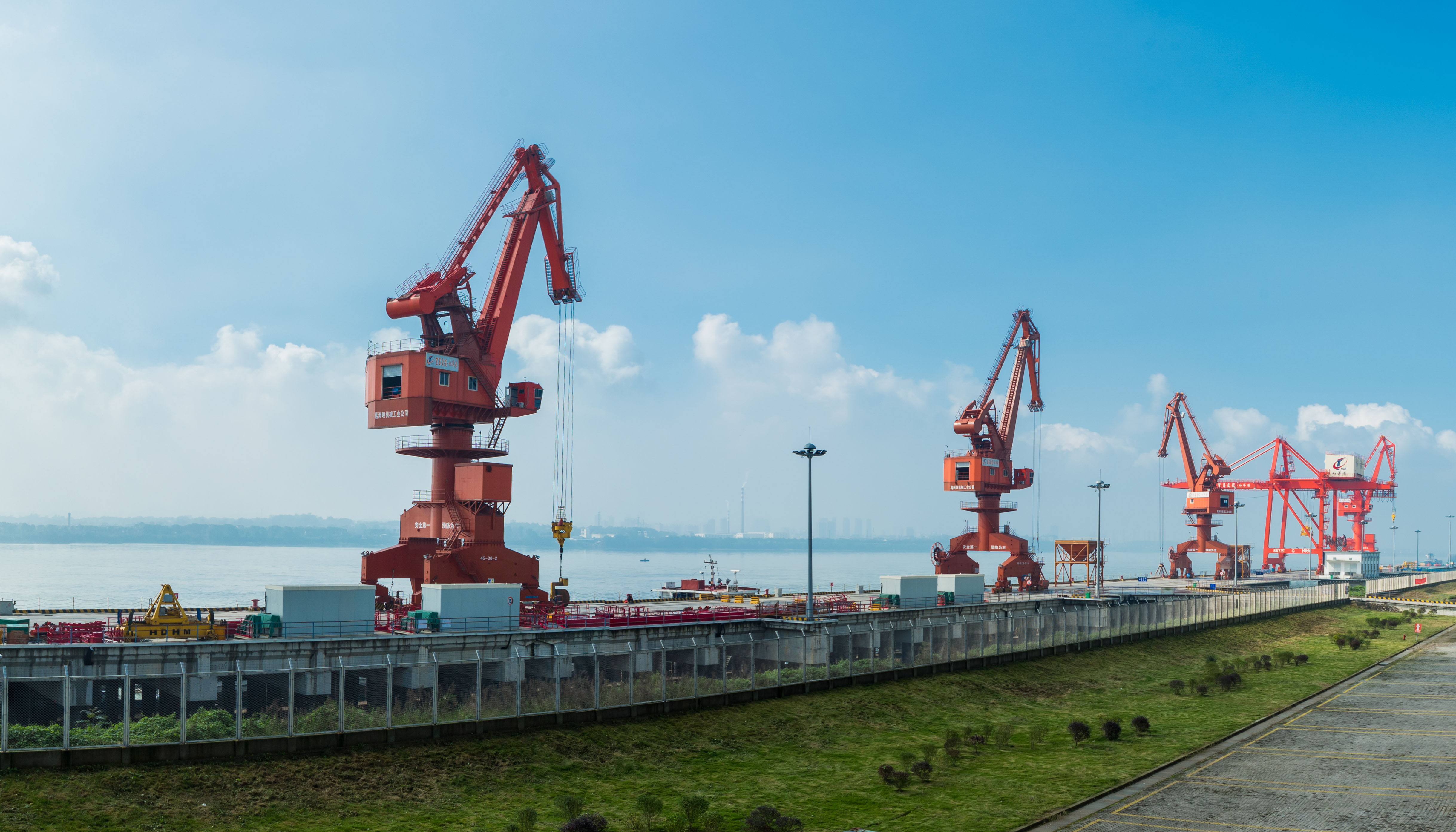 宜昌白洋港區(qū)碼頭工程。項目擬建泊位24個,利用岸線2500米,陸域面積2平方公里,估算投資80億元,遠期形成年吞吐能力2500萬噸、100萬標箱和40萬輛商品車。其中:一期工程擬建6個3000噸級泊位(水工結構兼顧5000噸級),使用岸線624米,陸域面積516畝,概算投資8.18億元。項目2012年10月開工建設。